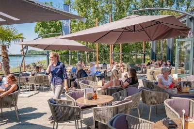 In de zomer is het terras van Jofel aan de Plas dé plek om te vertoeven. Met een prachtig uitzicht over de Krabbeplas en de omringende natuur, is het hier heerlijk toeven in de zon.